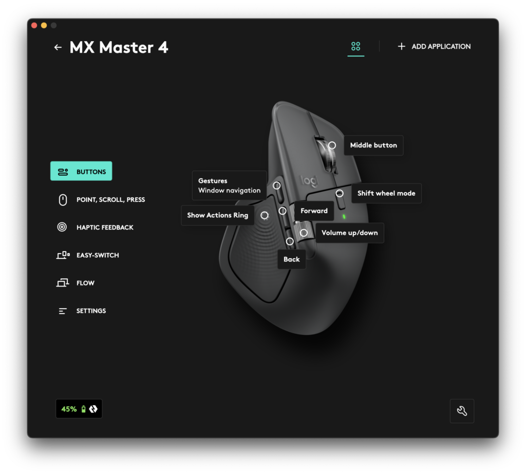 Where the MX Master 4 really shines is in its software. Logi Options+ lets you remap every button per application, and it actually works well. The new gesture button opens Mission Control with a quick press and moves between desktops if I hold it and drag side to side. It’s all muscle memory now. The software doesn’t try to predict what I want — it just gives me the flexibility to shape the mouse around my workflow.